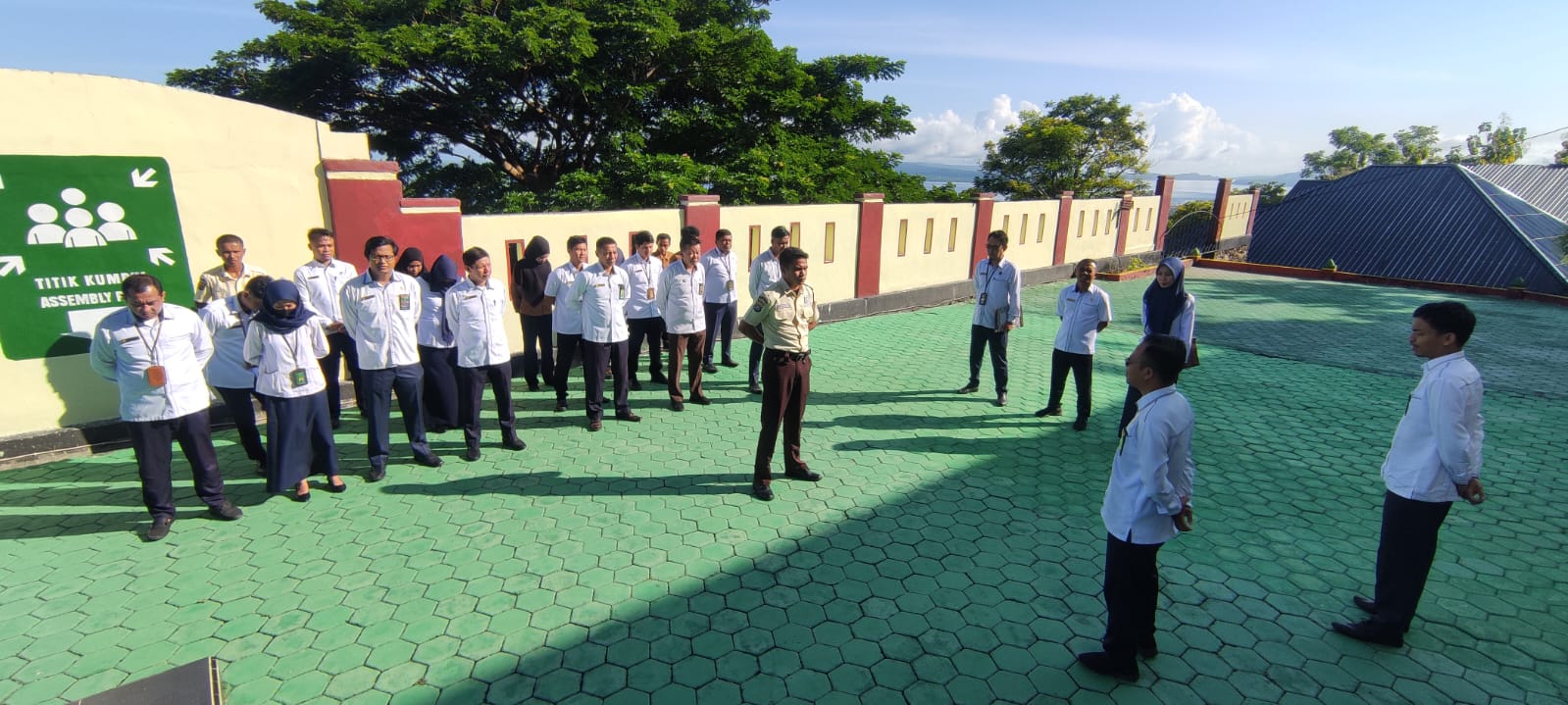 Apel pagi ditutup dengan harapan agar seluruh pegawai senantiasa diberikan kesehatan dan kelancaran dalam menjalankan tugas serta meningkatkan kualitas pelayanan kepada masyarakat.