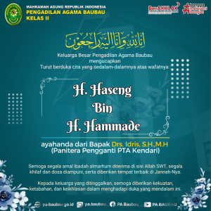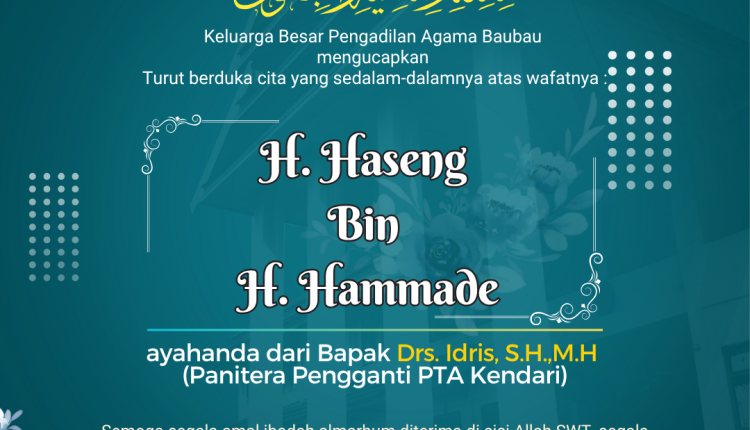 H. Haseng Bin H. Hammade ayahanda dari Bapak Drs. Idris, S.H.,M.H (Panitera Pengganti PTA Kendari). Semoga segala amal ibadah almarhum diterima di sisi Allah SWT, segala khilaf dan dosa diampuni, serta diberikan tempat terbaik di Jannah-Nya. Kepada keluarga yang ditinggalkan, semoga diberikan kekuatan, ketabahan, dan keikhlasan dalam menghadapi duka yang mendalam ini.